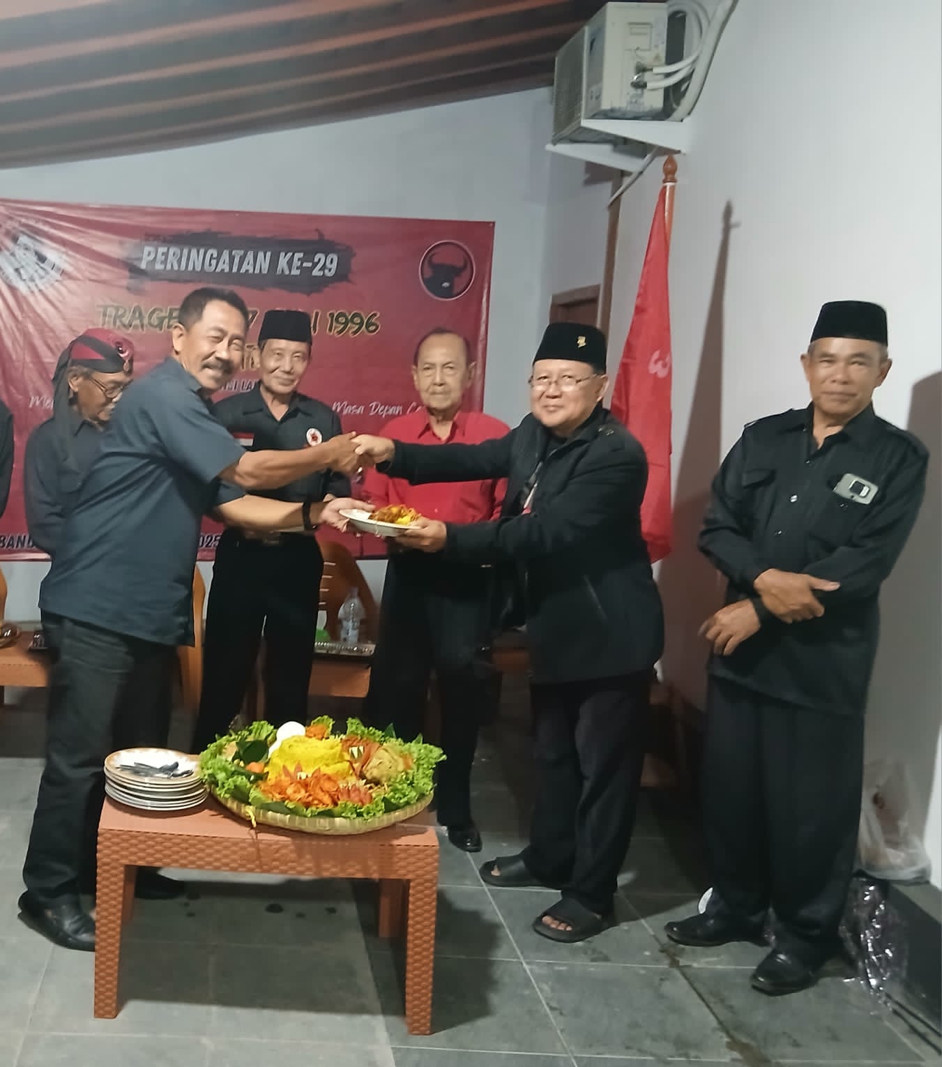 Acara peringatan yang berlangsung secara sederhana namun khidmat itu, dilanjut dengan do’a khusus untuk aktivis 27 Juli 96 asal Lampung, Almarhum Suhono dan Asep Yani. Kemudian, diakhiri dengan pemotongan tumpeng dan makan bersama. (*).