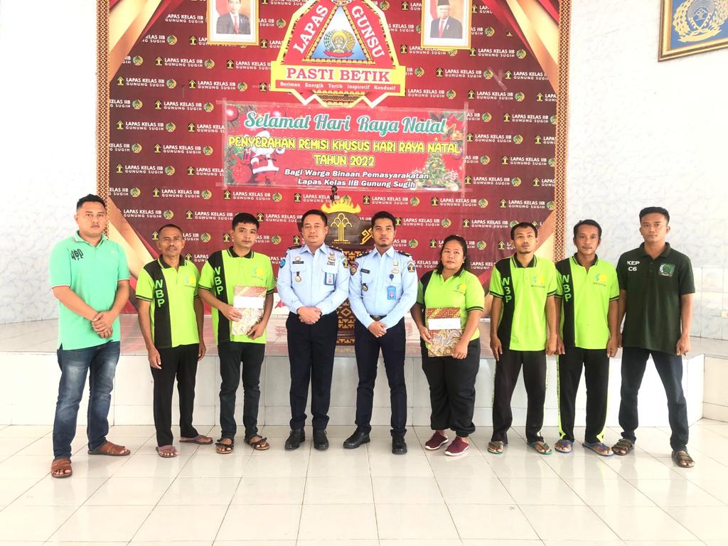 “Ada 7 orang Narapidana Lapas Gunung Sugih terima remisi natal 2022. 6 orang dapat 1 bulan, 1 orang dapat 15 hari” kata Kasubsi Regbimkemas Lapas Gunung Sugih Faisal, Minggu (25/12).