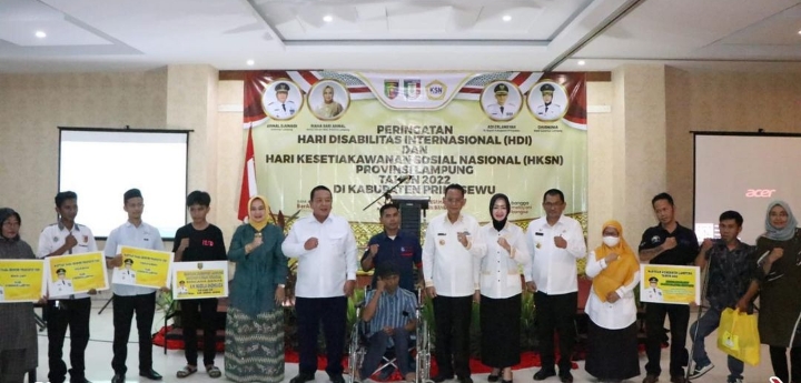 Secara simbolis santunan diserahkan langsung oleh Gubernur Lampung Arinal Djunaidi kepada ahli waris, pada acara peringatan Hari Disabilitas Internasional (HDI) dan Hari Kesetiakawanan Sosial Nasional (HKSN) yang diselenggarakan di Hotel Urban Kabupaten Pringsewu, beberapa hari lalu.
