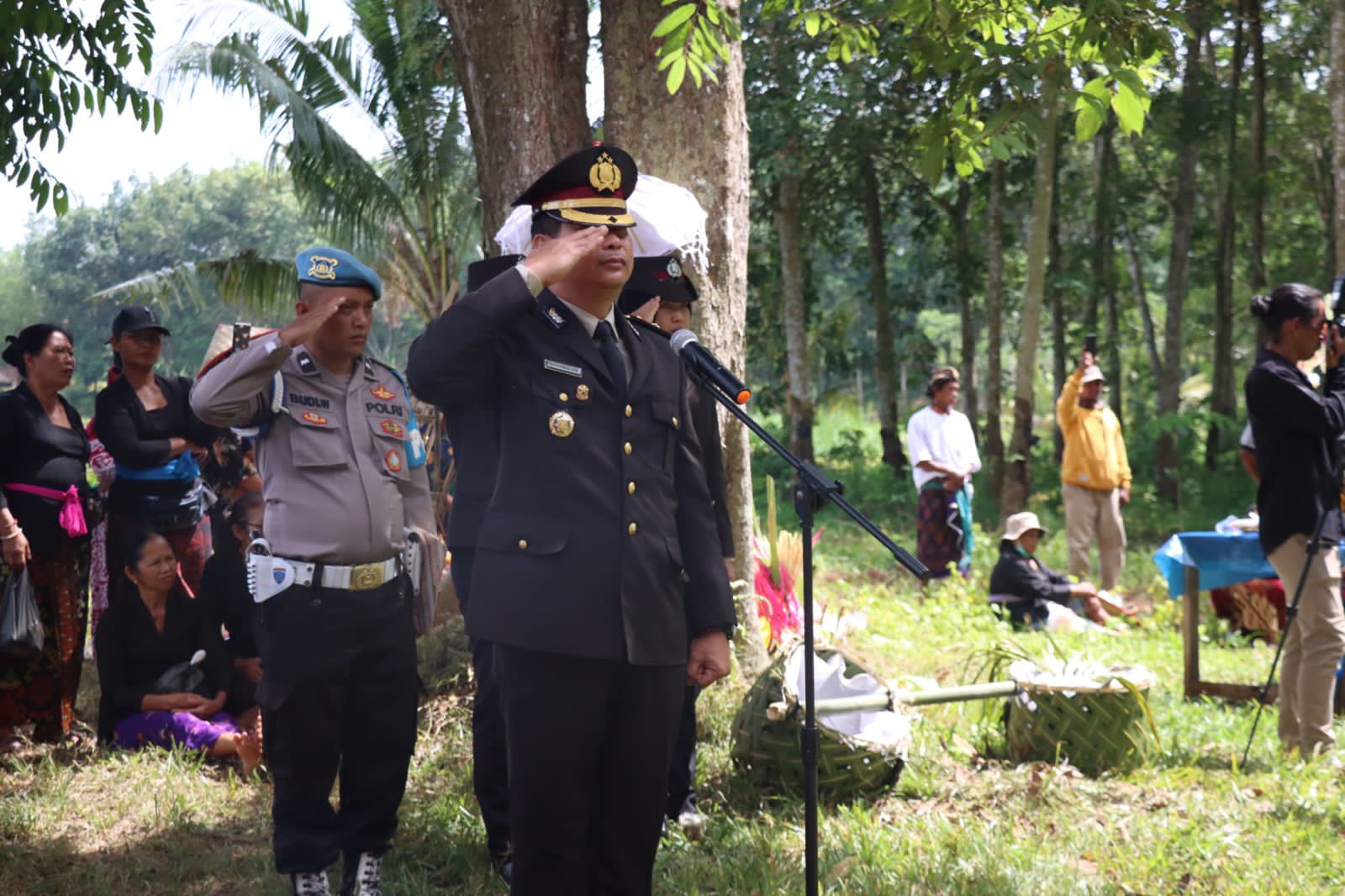 Kapolres Lampung Timur AKBP Zaky ALkazar Nasution melalui Wakapolres Lampung Timur Kompol Sugandhi SN memimpin langsung prosesi pemakaman yang dilaksanakan di tempat pemakaman Desa Restu Rahayu Kecamatan Raman Utara Kabupaten Lampung timur.