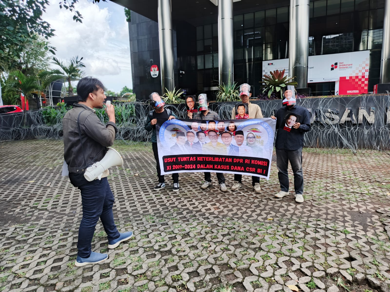 Jakarta – Forum Muda Lampung (FML) menggelar aksi massa di depan Gedung KPK RI, Rabu (8/1). Dalam aksinya mereka menuntut kejelasan dan transparansi dugaan keterlibatan anggota DPR RI, khususnya dari daerah pemilihan Lampung, dalam kasus dugaan korupsi dana Corporate Social Responsibility (CSR) Bank Indonesia (BI).