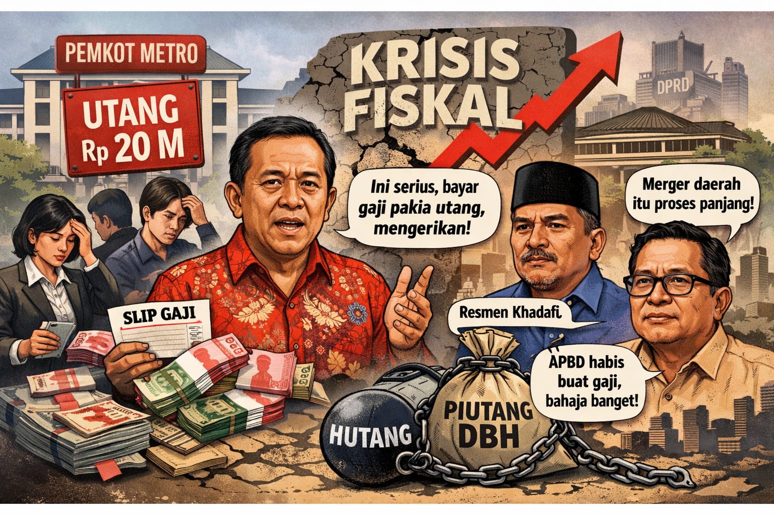METRO — Kondisi keuangan Pemerintah Kota (Pemkot) Metro menjadi sorotan tajam setelah mencuatnya pinjaman sekitar Rp20 miliar yang diduga digunakan untuk membayar gaji dan tunjangan aparatur. Fakta ini terungkap dalam dinamika pembahasan di DPRD dan memicu kekhawatiran serius soal kesehatan fiskal daerah.