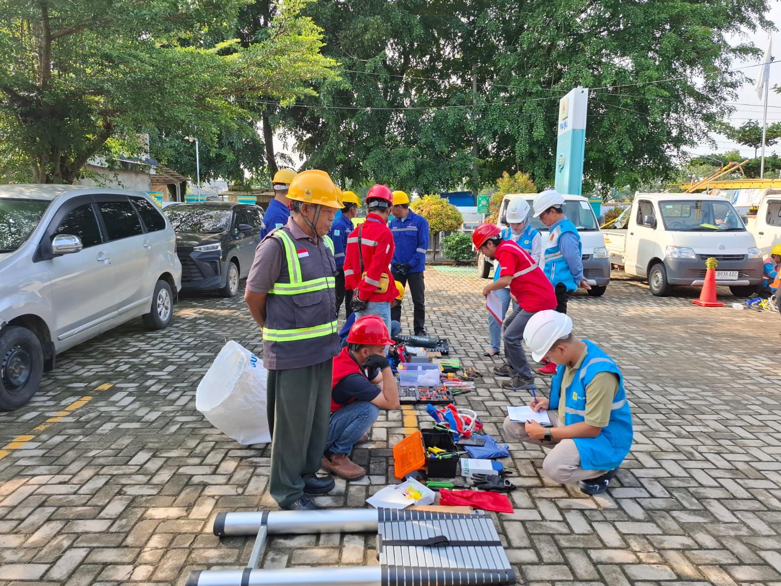 Seluruh personil pelayanan teknik PLN UP3 Metro mengikuti kegiatan dengan antusias dan semangat mengikuti apel dan gelar alat hingga pelaksanaan simulasi penanganan gangguan listrik.