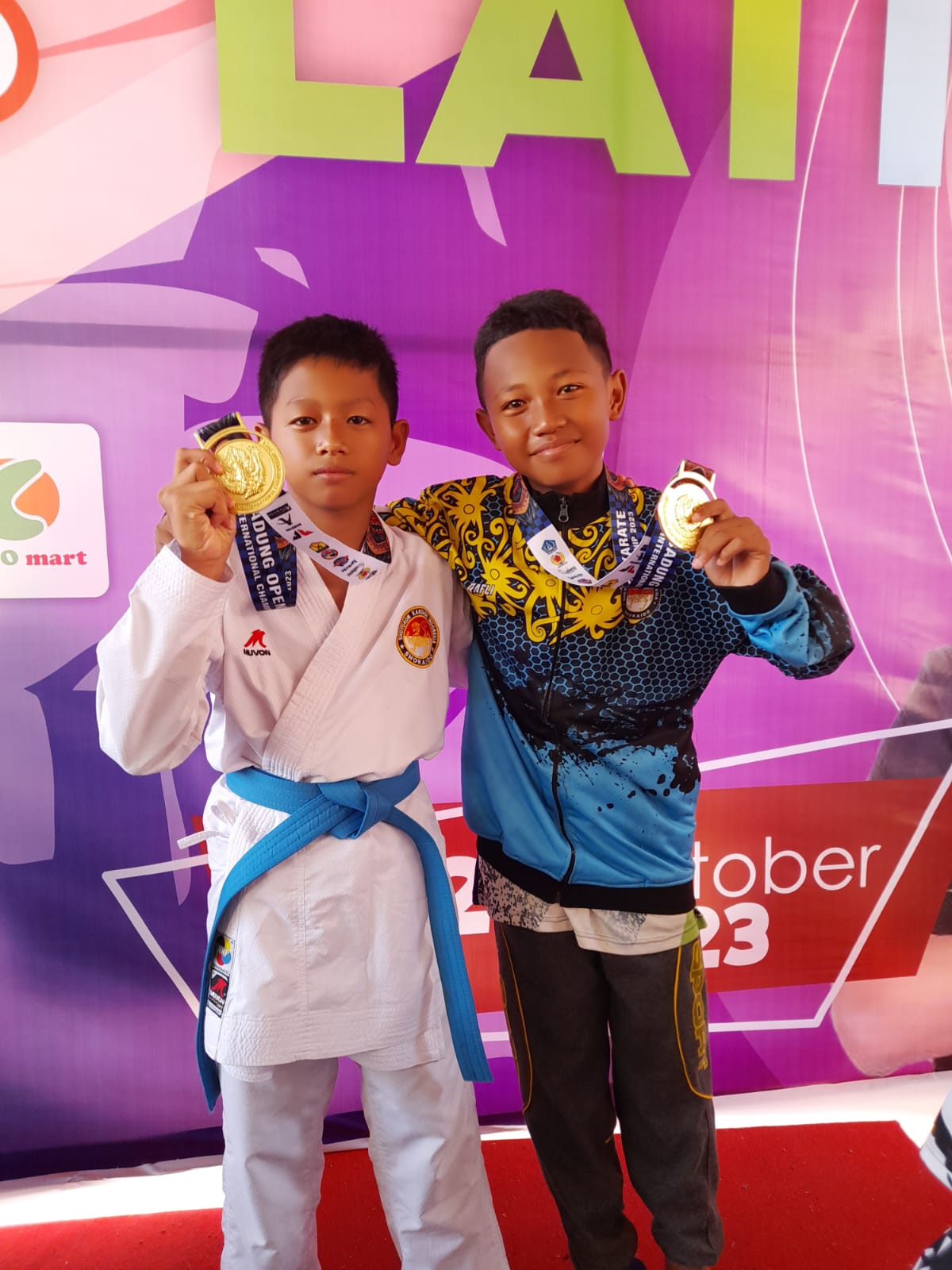 Bandar Lampung, Karateka putra Anugrah Bintang Patimura dan Muhammad Rafli siswa SDN 5 Talang berhasil merebut medali emas pada Kejuaraan Bali Badung Internasional Champion.