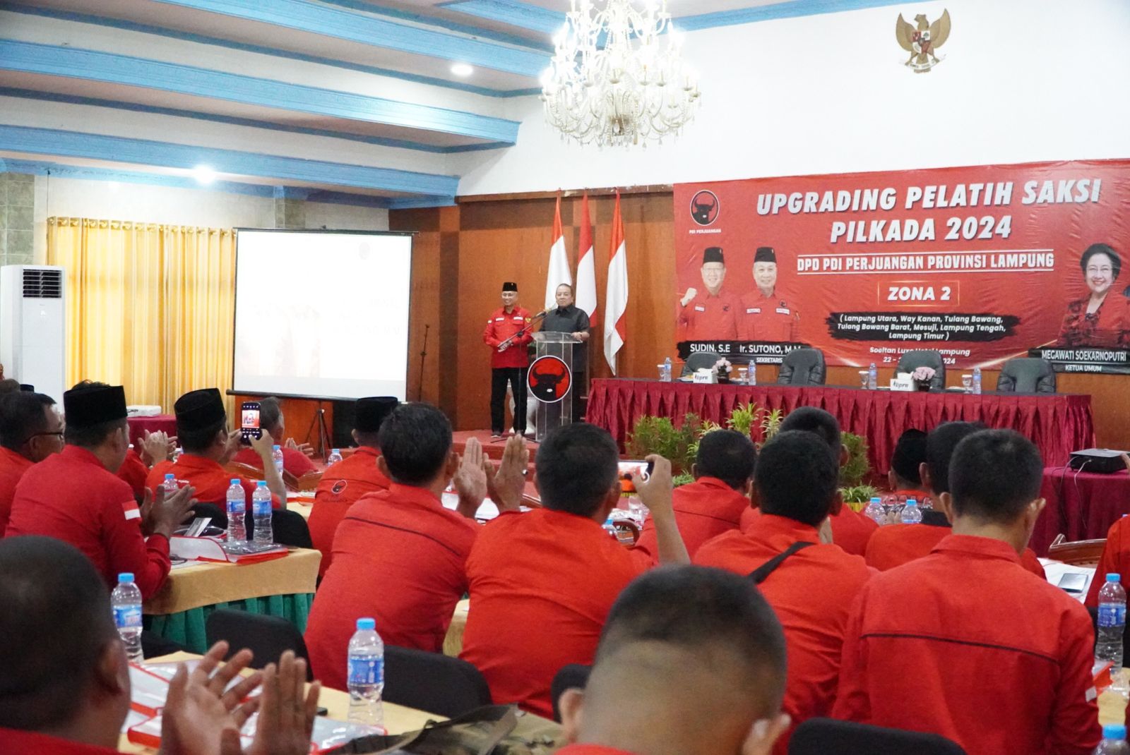 Bandar Lampung – Dalam rangka menghadapi Pilkada serentak 2024, DPD PDI Perjuangan Lampung menggelar upgrading pelatih saksi Zona II di Soeltan Luxe Hotel, Kota Bandar Lampung, Selasa ( 22/10/2024). Kegiatan ini dihadiri 135 peserta terdiri dari Lampung Utara, Lampung Tengah, Lampung Timur, Way Kanan, Tulang Bawang, Tulang Bawang Barat dan Mesuji.