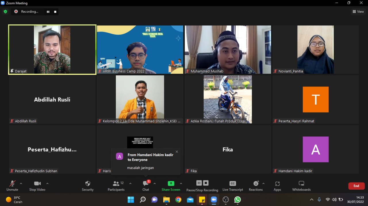 Program ARMI Business Camp 2022 sedang berlangsung dari 26 Juli – 18 September 2022. Setiap hari Selasa dan Sabtu, yang akan di hadiri oleh para mentor-mentor ahli dalam bidang bisnis. (D1).