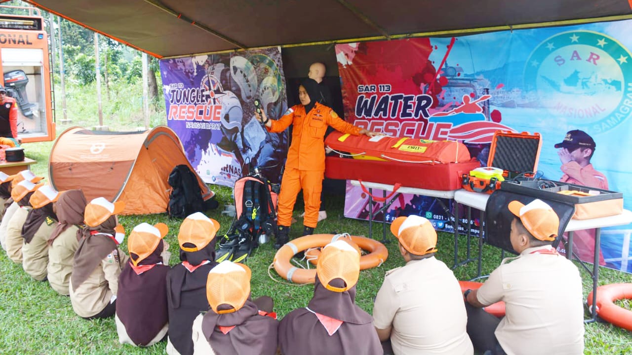 Bandarlampung—Basarnas Lampung gelar kegiatan SAR Goes To School (SGTS), bertempat di GSG Karya Bakti Herman H.N Kemiling Kota Bandar Lampung pada Rabu (26/07/2023).