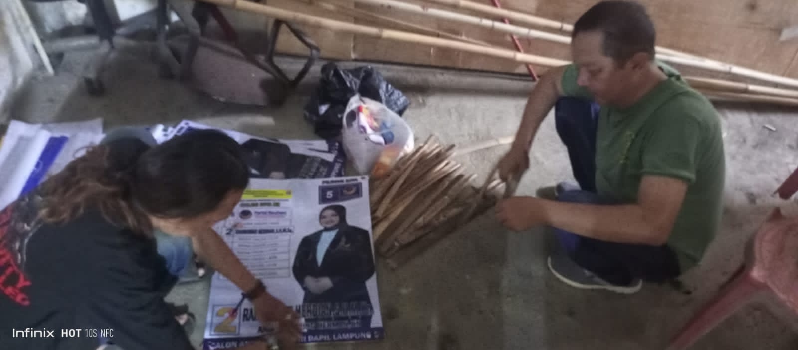 Mereka diperintahkan untuk mempersiapkan pemasangan banner Caleg yang notabene anak Walikota Bandarlampung Eva Dwiana dan Ketua DPW Partai Nasdem Lampung, Herman HN di di Kelurahan Perumnas Way Halim, Kecamatan Way Halim, Kota Bandarlampung, Selasa (12/13).