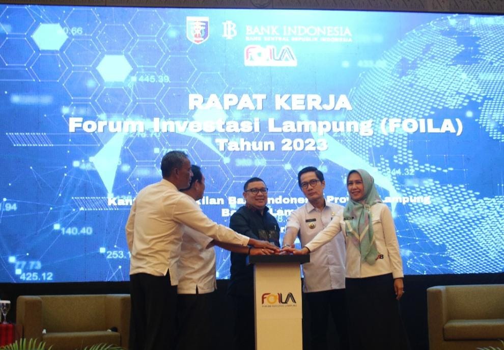 BANDARLAMPUNG – Kantor Perwakilan Bank Indonesia (KPw BI) Lampung menggelar kegiatan Rapat Kerja Forum Investasi Lampung (FOILA) 2023 di Gedung Serba Guna BI Lampung, Rabu (25/01) Dalam kegiatan tersebut dihadiri Badan Perencanaan Pembangunan Daerah (Bappeda) Provinsi Lampung dan Dinas Penanaman Modal dan Pelayanan Terpadu Satu Pintu (DPMPTSP).