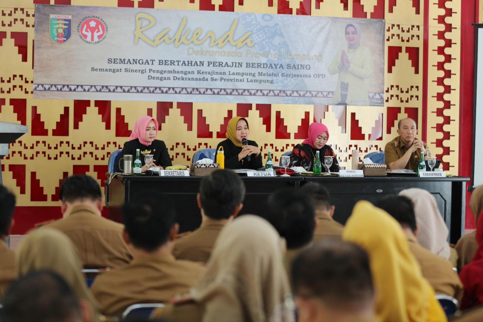Rakerda bertema “Semangat Bertahan Perajin Berdaya Saing” ini diharapkan dapat dimaknai sebagai semangat bersinergi dalam mengembangkan kerajinan Lampung melalui kerjasama dengan Organisasi Perangkat Daerah (OPD) Se-Provinsi Lampung.