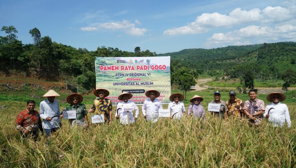 Bandarlampung – Upaya memperkuat ketahanan pangan nasional kini menjalar hingga ke tengah-tengah kebun sawit. PT Perkebunan Nusantara (PTPN) IV PalmCo, anak usaha Holding Perkebunan PTPN III (Persero), memanfaatkan lahan peremajaan sawit rakyat untuk menanam padi gogo. Program ini telah memasuki tahap panen di dua daerah, Aceh dan Jambi, di Oktober 2025 ini.