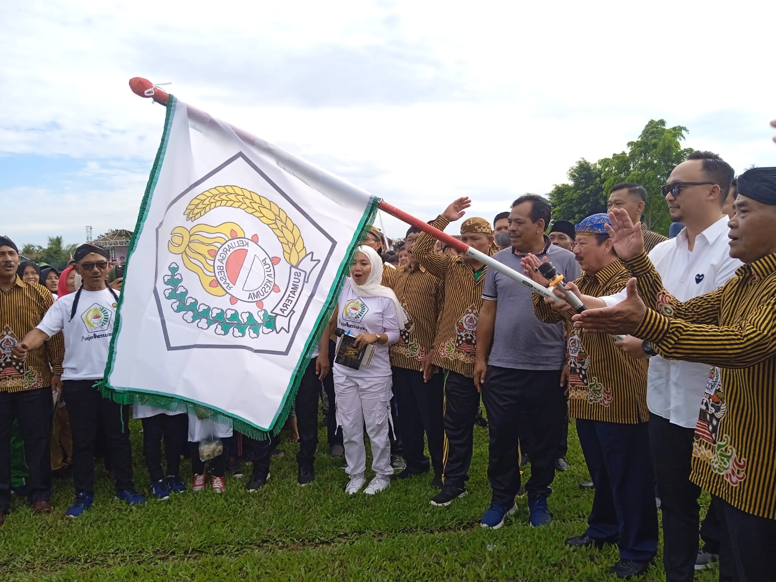Lampung Selatan – Wakil Bupati Lampung Selatan Pandu Kesuma Dewangsa membuka jalan sehat HUT Pujakesuma ke-42 di Lapangan Desa Margomulyo Kecamatan Jati Agung Lampung Selatan Minggu (17/07).