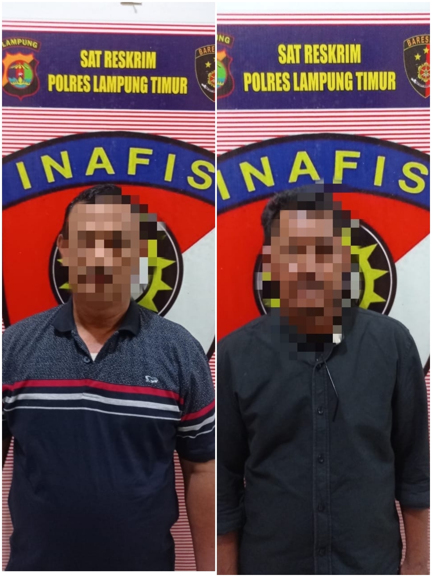 Kapolres Lampung Timur AKBP Zaky Alkazar Nasution, didampingi Kasat Reskrim IPTU Johanes EP Sihombing, pada Jumat (19/8), menerangkan bahwa inisial ke-2 tersangka adalah SH (50) Kepala Desa Rejoagung, dan PW (55) Kepala Desa Sumberrejo, Kecamatan Batanghari.