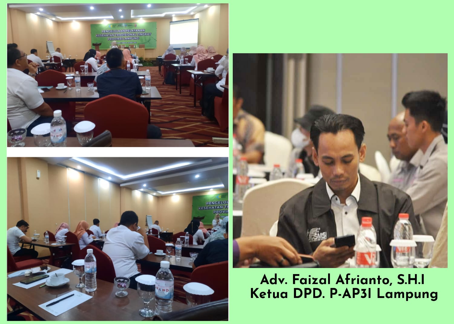 BANDAR LAMPUNG – Penyelenggaraan Pertemuan Pengelolaan Pelayanan Kesehatan Tradisional yang diselenggarakan oleh Dinas Kesehatan Provinsi Lampung yang dihadiri oleh perwakilan tugas dari seluruh Dinas Kesehatan Kabupaten/ Kota se-Provinsi Lampung dan Perwakilan Tugas dari Kementerian Kesehatan RI serta turut dihadiri oleh perwakilan dari Asosiasi/ Perkumpulan Penyehat Tradisional (HATTRA) dari “Perkumpulan Para Pemijat Penyehatan Indonesia (P-AP3I) Lampung yang dihadiri langsung oleh KETUA DPD. P-AP3I Lampung sekaligus sebagai Ketua Bidang Organisasi Serikat Media Siber Indonesia (SMSI) Provinsi Lampung “FAIZAL AFRIANTO”