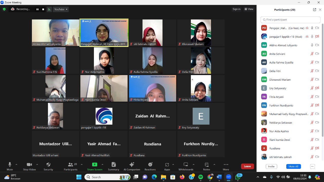 Bandarlampung – Balai Pelatihan dan Pengembangan Teknologi Informasi dan Komunikasi (BPPTIK) Kementerian Komunikasi dan Informatika Republik Indonesia (Kemenkominfo RI) mengajukan permohonan Dosen Prodi Sistem Informasi Institut Informatika dan Bisnis (IIB) Darmajaya Halimah, S.Kom., M.T.I. untuk menjadi pengajar Vocational School Graduate Academy (VSGA) Digital Talent Scholarship (DTS) 2024.