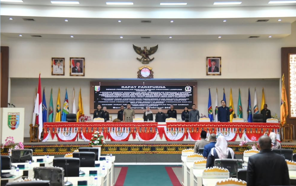 Bandarlampung – DPRD Provinsi Lampung menggelar Rapat Paripurna dalam rangka penyampaian hasil pemeriksaan Panitia Khusus (Pansus) terhadap Laporan Hasil Pemeriksaan (LHP) Badan Pemeriksa Keuangan (BPK) Tahun Anggaran 2023 sampai dengan Semester I Tahun 2024 Pada Pemerintah Provinsi Lampung dan LHP Kepatuhan Atas Belanja Daerah Tahun Anggaran 2024, Senin (3/2).