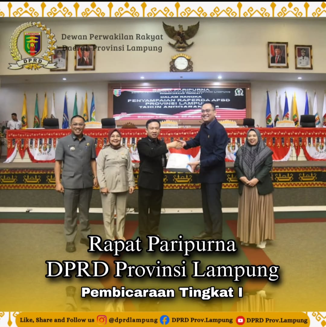 Dalam Rapat Paripurna ini Pemerintah Provinsi Lampung melalui Sekretaris Daerah Provinsi Lampung Marindo Kurniawan Menyerahkan Dokumen Rancangan Peraturan Daerah (Raperda) Anggaran Pendapatan dan Belanja Daerah (APBD) Tahun Anggaran 2026 kepada DPRD Provinsi Lampung.