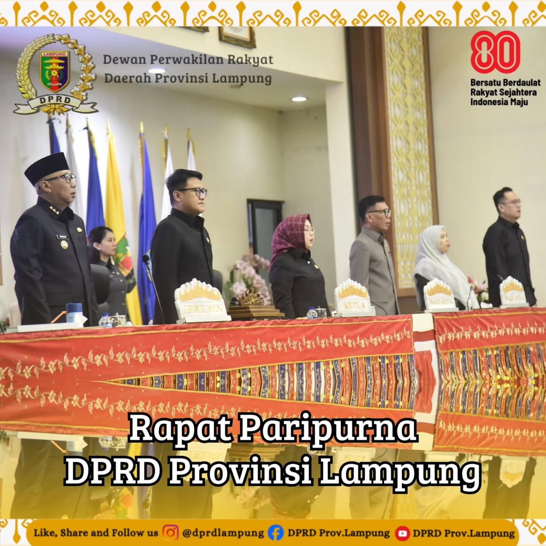 Rapat Paripurna tersebut dipimpin langsung oleh Ketua DPRD Provinsi Lampung, A. Giri Akbar, dan dihadiri Gubernur Lampung, Rahmat Mirzani Djausal serta jajaran pejabat utama Pemerintah Provinsi Lampung dan tamu undangan lainnya.