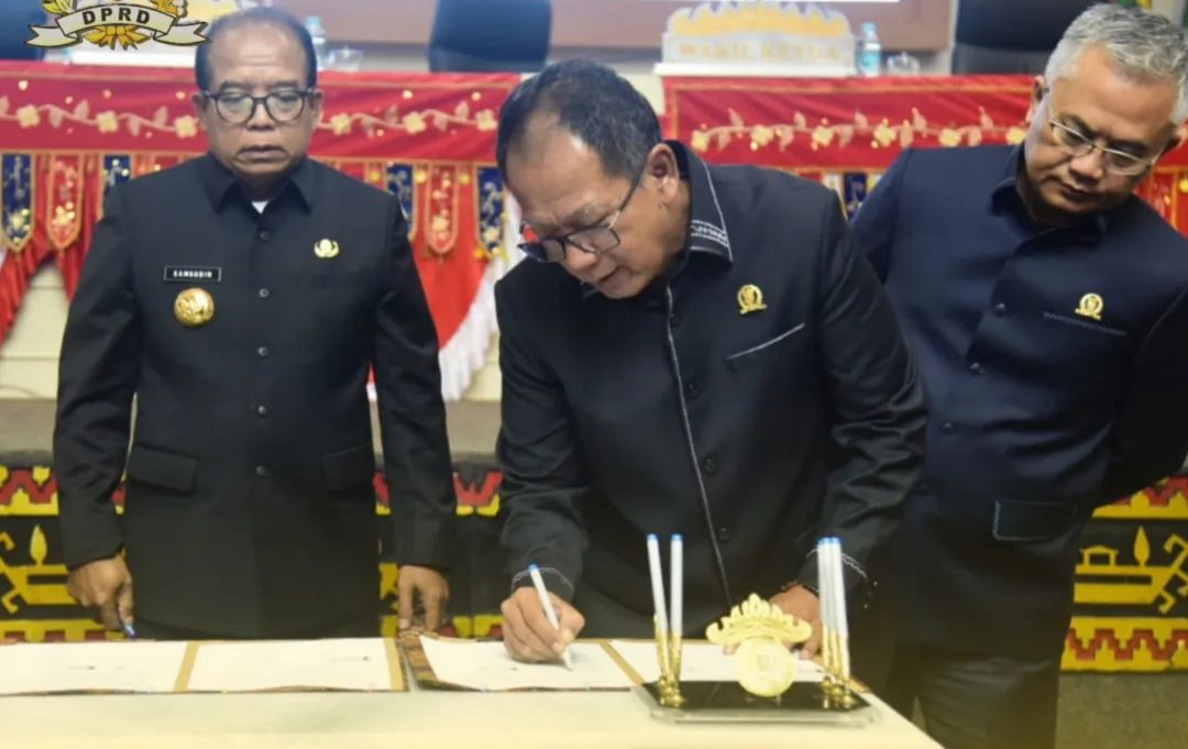 Bandarlampung -DPRD Provinsi Lampung mengesahkan Rancangan Peraturan Daerah (Raperda) tentang Anggaran Pendapatan dan Belanja Daerah (APBD) Provinsi Lampung Tahun Anggaran 2025. Hal itu ditandai dengan penandatanganan bersama antara Pj. Gubernur Lampung Samsudin dan Ketua DPRD Lampung Mingrum Gumay dalam Rapat Paripurna DPRD Lampung di Ruang Sidang DPRD Lampung, Jum’at (30/8).