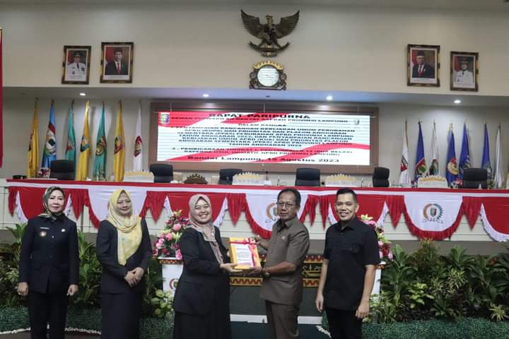 Rapat paripurna DPRD Provinsi Lampung yang dipimpin oleh Ketua DPRD, Mingrum Gumay dan dihadiri oleh Wakil Gubernur Lampung, Chusnunia alias Nunik yang sekaligus menyerahkan naskah Rancangan KUPA Tahun 2023 & KUA-PPAS APBD Tahun 2024 ke pimpinan sidang.