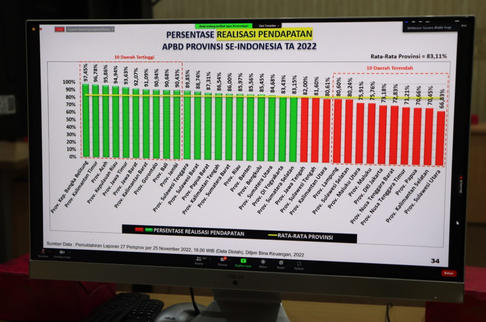 Dalam kesempatan itu, Menteri Dalam Negeri Republik Indonesia Tito Karnavian mengatakan, berdasarkan sumber data pemutakhiran laporan 27 Pemprov per 25 November 2022 Ditjen Bina Keuangan 2022, Provinsi Lampung menempati posisi kedua dengan presentase 80,10% dalam presentase realisasi belanja APBD Provinsi tertinggi se-Indonesia TA 2022.