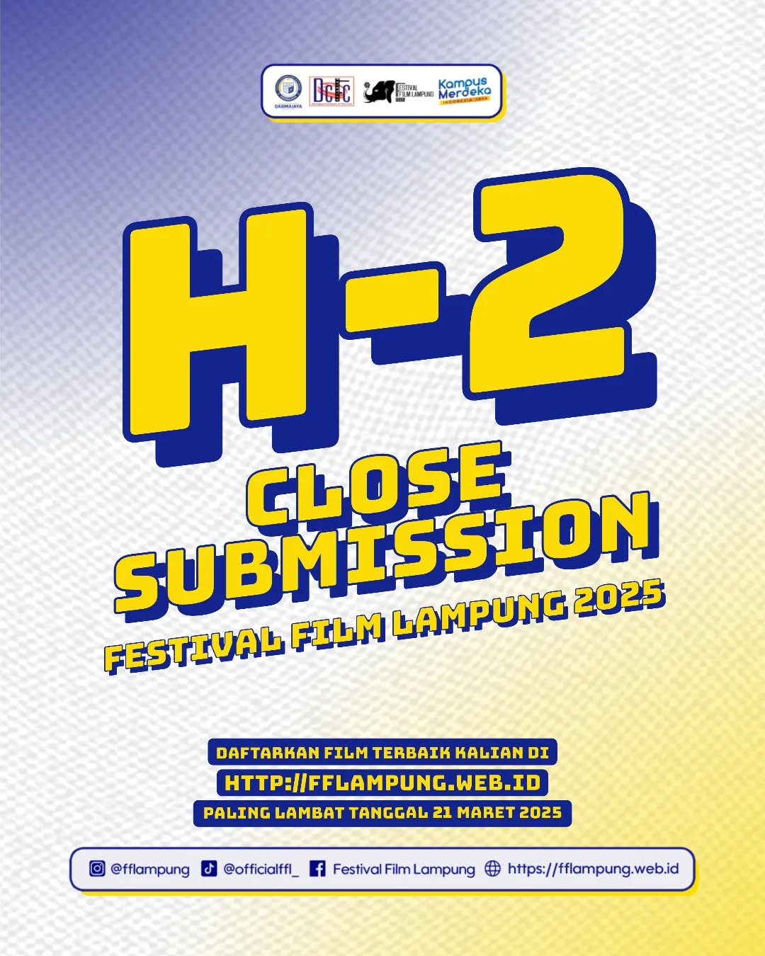 Bandarlampung – Kabar gembira bagi para sineas yang belum sempat mengirimkan karyanya ke ajang bergengsi Festival Film Lampung (FFL) 2025. Unit Kegiatan Mahasiswa (UKM) Darmajaya Computer & Film Club (DCFC) Institut Informatika dan Bisnis (IIB) Darmajaya melakukan perpanjangan open submission hingga 21 Maret 2025 pukul 23.59 WIB. Dengan diperpanjangnya masa pendaftaran, diharapkan semakin banyak karya keren dan luar biasa para sineas muda dari berbagai daerah di Indonesia.