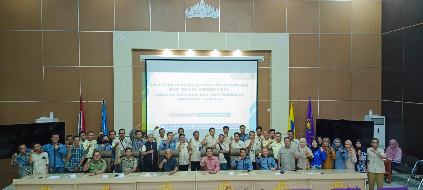 Bandarlampung – Fakultas Keguruan dan Ilmu Pendidikan (FKIP) Universitas Lampung (Unila) menggelar Pelatihan Alat Pemadam Api Ringan (APAR) bagi Tenaga Kependidikan di Aula A FKIP Unila, Selasa (5/3). Acara tersebut dihadiri oleh Wakil Dekan bidang Umum dan Keuangan Dr. Albet Maydiantoro, M.Pd., Ketua Tata Usaha, para Sub Koordinator, serta para Tenaga Kependidikan di lingkungan FKIP Unila.