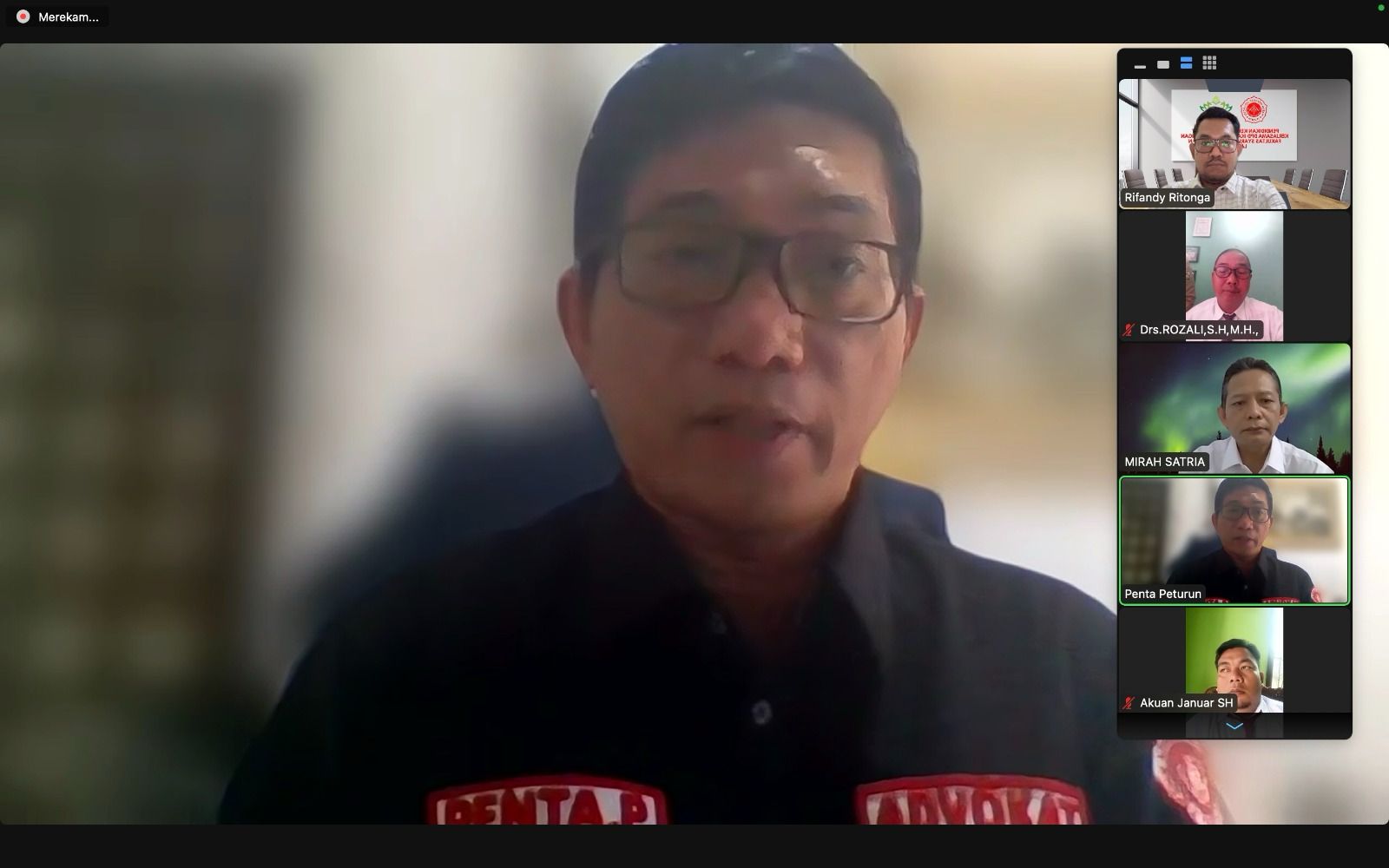 Pembukaan PKA dilakukan melalui virtual zoom, oleh Penta Peturun selaku Ketua DPD IKADIN Lampung sekaligus Wakil Sekretaris DPP IKADIN Pusat bersama Wakil Dekan II Fakultas Syariah UIN-RIL.