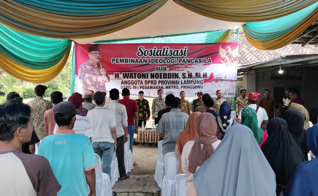“Jangan sampai, ideologi bangsa kedepan pudar. Karena, yang namanya ideologi pancasila sudah kokoh dan menguatkan mengakomodir semua unsur, rasa, agama, dan golongan,” Kata Anggota DPRD Provinsi Lampung, Watoni Noerdin. Dihadapan masyarakat Desa Taman Sari, Kecamatan Gedong Tataan, Kabupaten Pesawaran. Sabtu (11/03/2023).