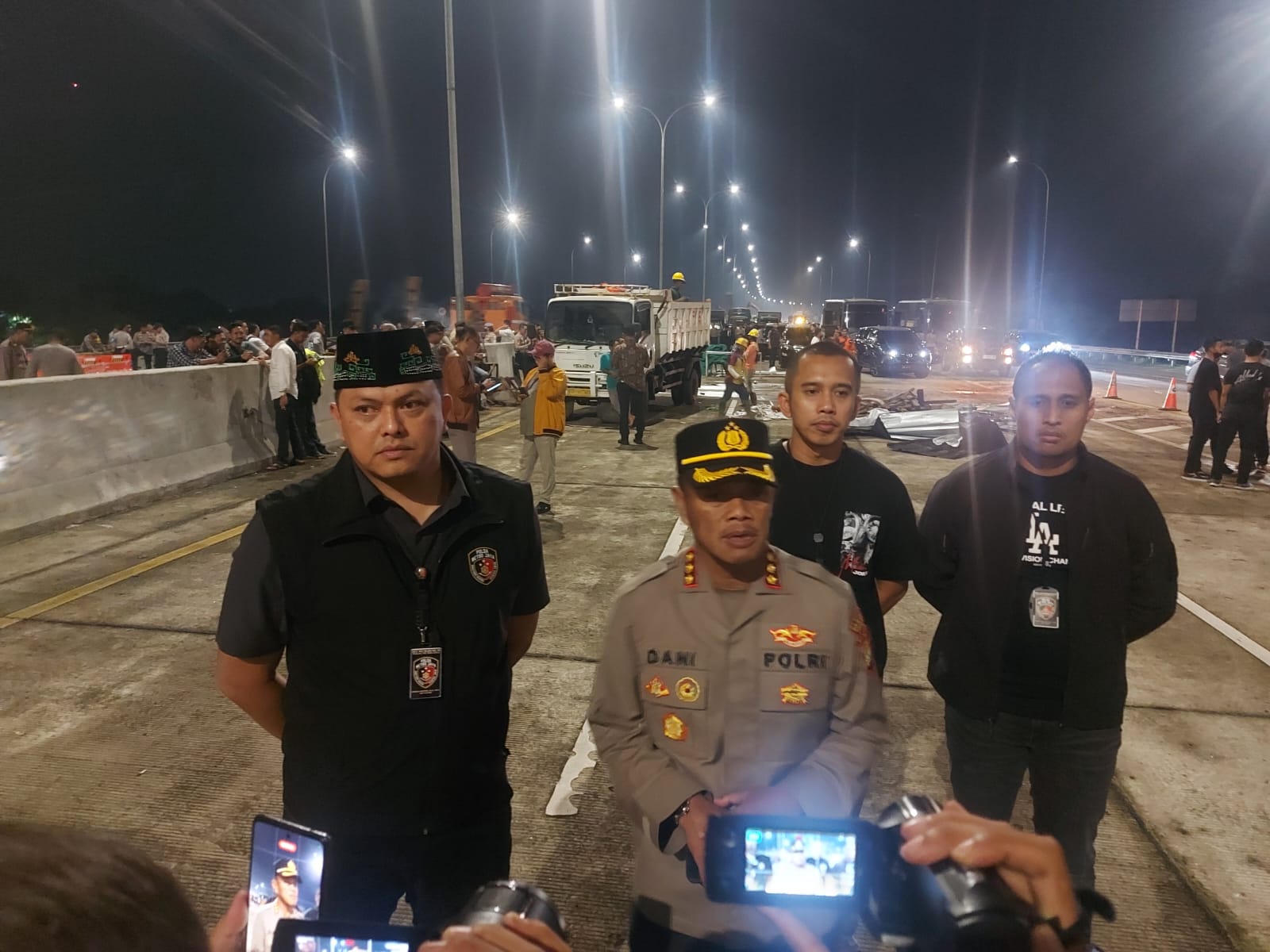 Jakarta – Dirkrimum Polda Metro Jaya Kombes Hengki Haryadi memimpin langsung pembubaran aksi unjuk rasa yang berada di Tol Jatikarya.