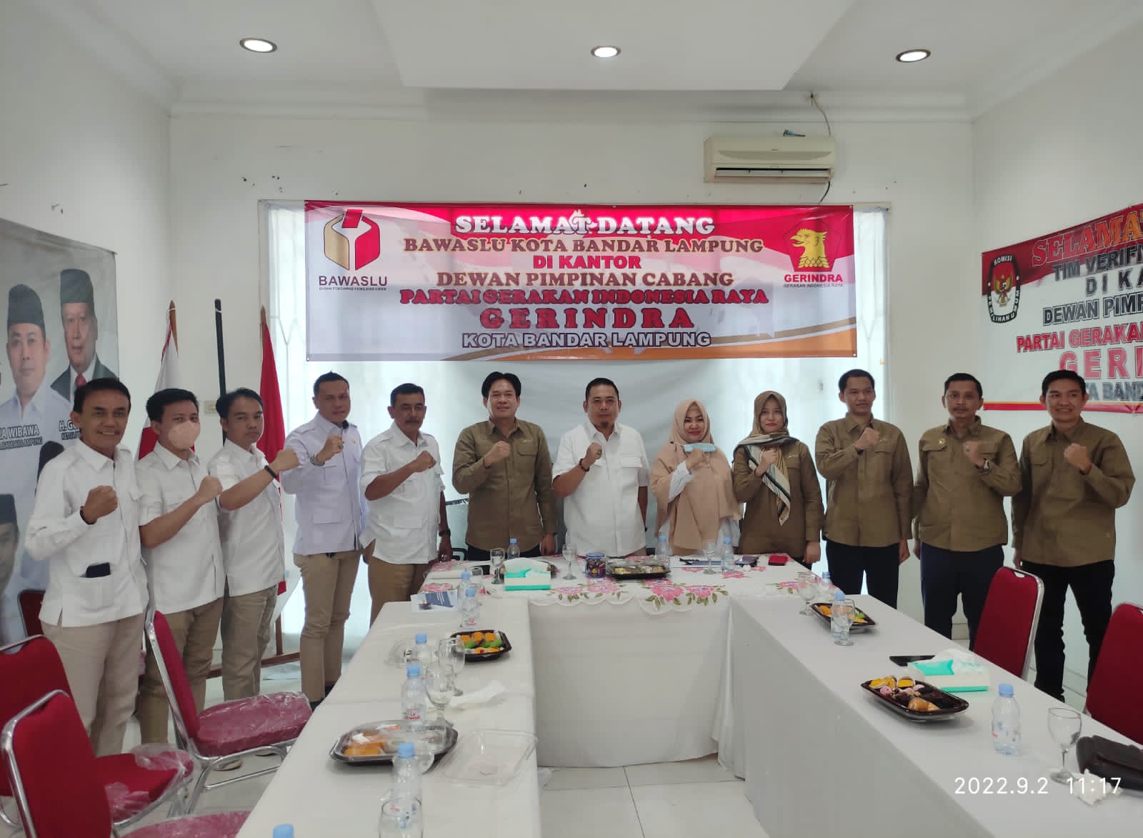 Partai Gerindra Bandar Lampung menjadi partai ketiga yang dikunjungi Bawaslu Kota Bandar Lampung dalam rangkaian roadshow sosialisasi kepada partai politik, yang dilaksanakan di kantor DPC Partai Gerinda Kota Bandar Lampung jl. Putri Dibalau No. 109 Kedamaian Bandar Lampung.