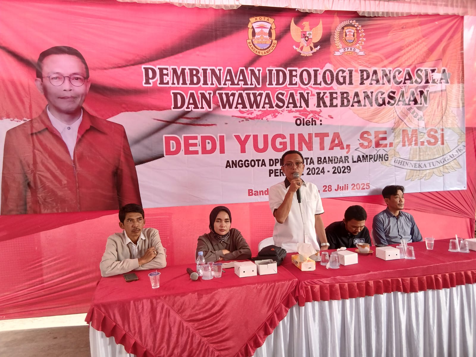 Bandar Lampung – Wakil Ketua Komisi III DPRD Kota Bandar Lampung dari Fraksi PDI Perjuangan Dedi Yuginta, SE, M.Si menggelar sosialisasi Pembinaan Ideologi Pancasila dan Wawasan Kebangsaan ( PIP-WK ) di Kelurahan Kota Baru, Kecamatan Tanjung Karang Timur, Kota Bandar Lampung, Senin ( 28/07 ).