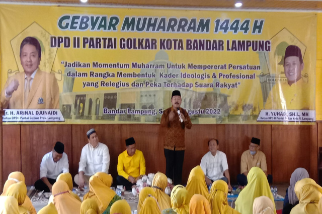 Ketua Partai Golkar Kota Bandarlampung Yuhadi menyambut baik kegiatan Gebyar Muharram 1444 H yang diinisiasi oleh Pengajian Al Hidayah. Dengan kegiatan ini, selain untuk mempererat tali silaturrahmi juga bisa menjadi pembelajaran ibu-ibu dan pengurus Golkar.