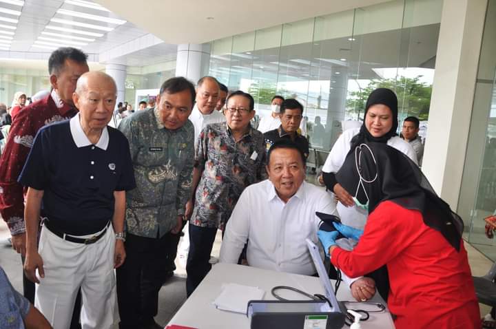Selanjutnya Gubernur Lampung berkesempatan untuk meninjau posko-posko pemeriksaan kesehatan yang diperuntukkan bagi para pasien yang telah lolos screening sebelum menjalani operasi. Di salah satu posko pemeriksaan Tekanan darah Gubernur Arinal djunaidi menyempatkan diri untuk memeriksakan tekanan darahnya.