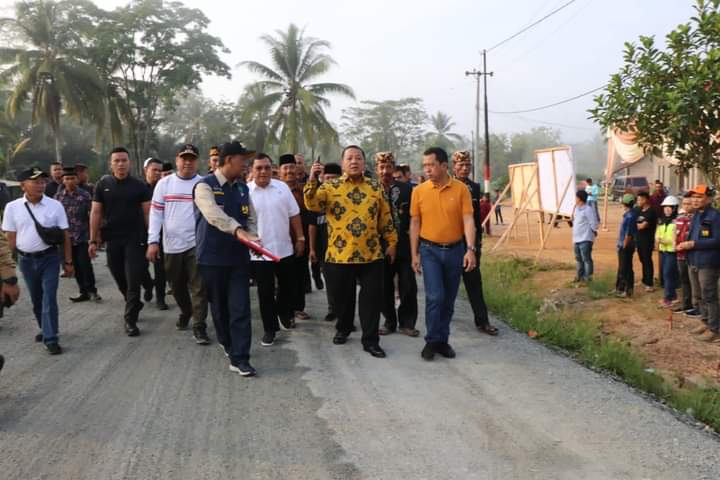 TUBABA—Gubernur Lampung Arinal Djunaidi meninjau langsung perbaikan tiga ruas jalan di Kabupaten Tulang Bawang Barat dan Way Kanan, Sabtu (24/06/2023).