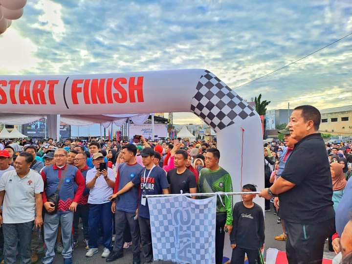 Kegiatan jalan sehat diikuti oleh kurang lebih sebanyak 3000 peserta dengan rute Tugu Adipura, Jl. Ahmad Yani – Jl. Kartini – Jl. Katamso – Jl. Raden Intan. (Rls)