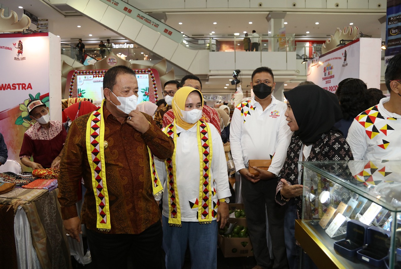 Bandarlampung – Gubernur Lampung Arinal Djunaidi resmi membuka Kick-off Semarak UMKM Tanggamus ditandai pemukulan rebana oleh Gubernur bersama Ketua Dekranasda Provinsi Lampung Ibu Riana Sari Arinal, dan Bupati Tanggamus Dewi Handajani, di Mall Boemi Kedaton, Bandar Lampung, Jum’at (4/11).