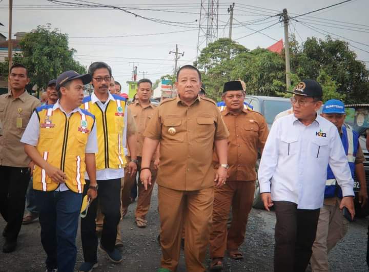 Tulang Bawang, — Gubernur Arinal Djunaidi meninjau perbaikan jalan di Kabupaten Tulang Bawang, pada Senin (13/11/2023) sore. Jalan yang dikunjungi adalah ruas Bogatama – Pasar Batang, di Kecamatan Penawar Tama.