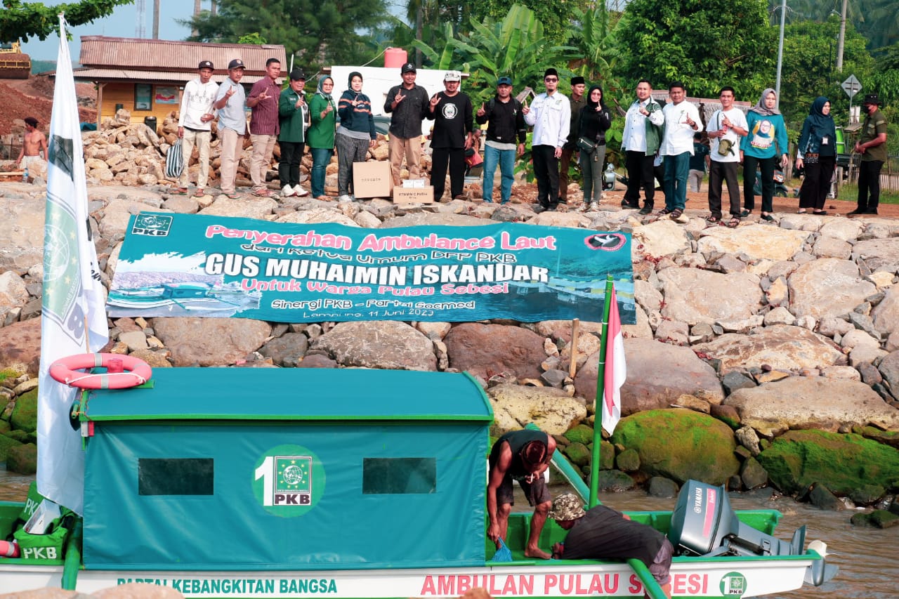 Penyerahan bantuan ini diserahkan oleh Sekretaris DPP PKB bidang Gerakan Sosial Penanggulangan Bencana Lukmanul Hakim didampinggi Ketua DPW PKB Lampung Chusnunia Chalim kepada pewakilan nelayan dari Pulau Sebesi, di Desa Kunjir, Rajabasa, Lampung Selatan, Minggu (11/6/2023. Selain itu juga hadir anggota DPR RI dari Dapil Lampung Ella Siti Nuryamah dan beberapa fungsionaris PKB Lampung. “Dari dialog kami dengan tokoh nelayan Sebesi mereka memang sangat membutuhkan ambulan laut untuk mengantar warga sakit, karena untuk mengakses ke layanan kesehatan terdekat memang harus melalui laut,” kata Lukmanul Hakim.