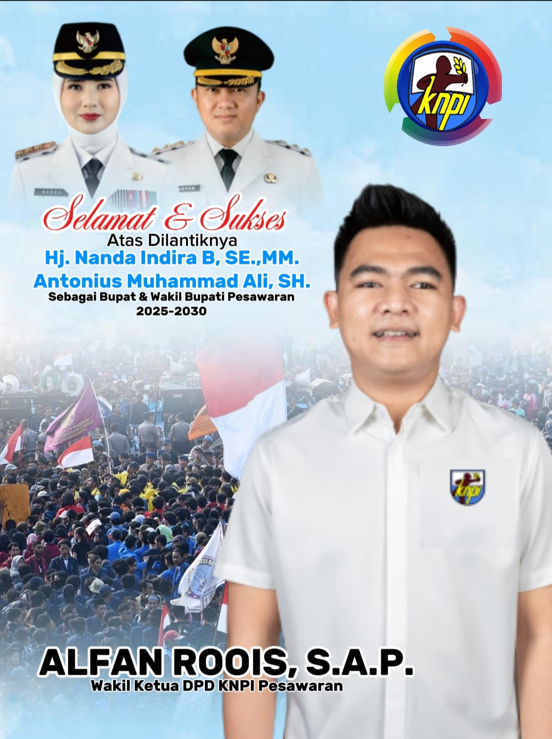 Kami, generasi muda Pesawaran, mengucapkan selamat kepada Hj. Nanda Indira Bastian dan Antonius Muhammad Ali atas amanah besar yang kini diemban. Semoga kepemimpinan baru ini membawa Pesawaran menuju kemajuan yang nyata, kesejahteraan masyarakat yang lebih merata, dan kualitas hidup yang lebih baik.