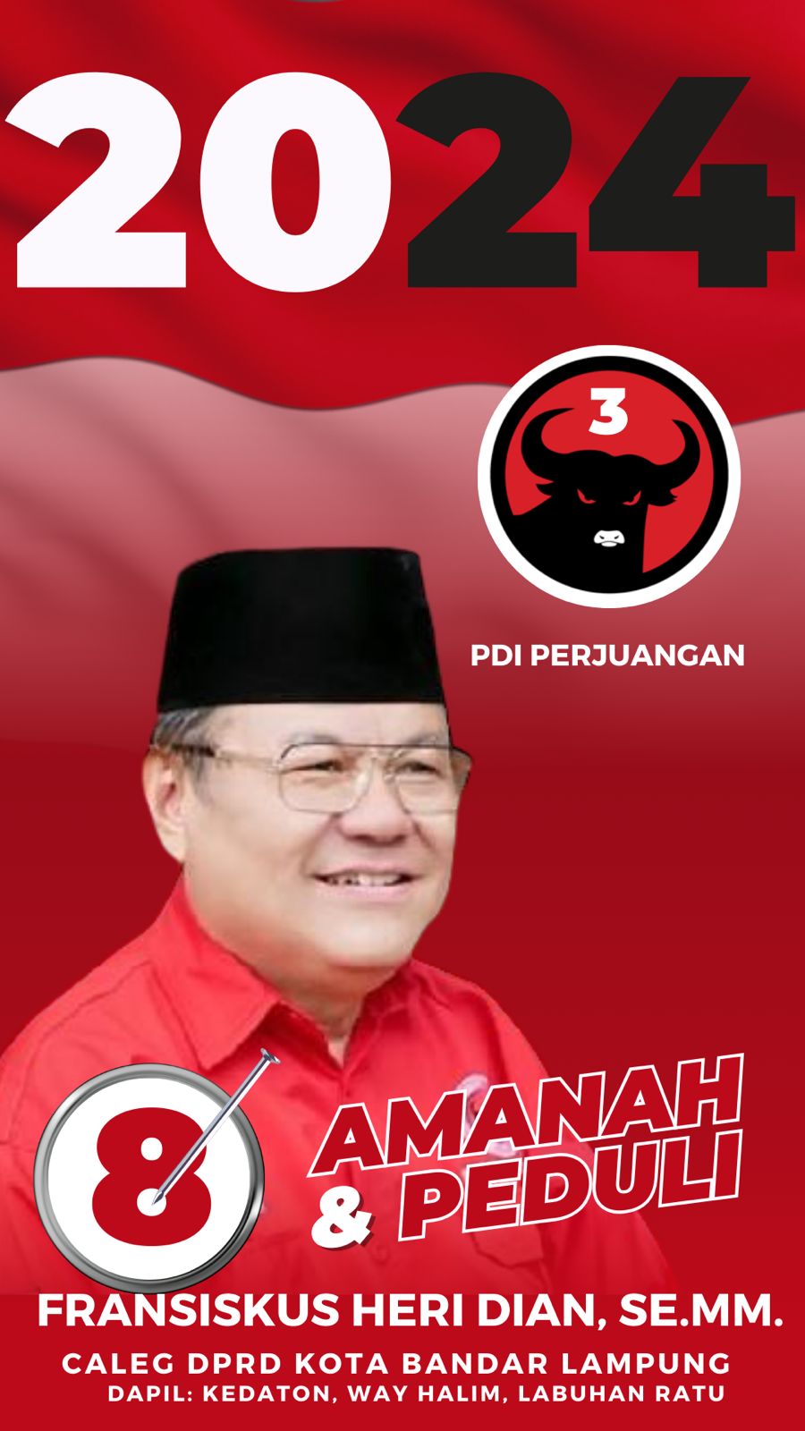 Bandar Lampung, Calon Anggota Legislatif ( Caleg ) DPRD Kota Bandar Lampung Fransiskus Heri Dian, SE, MM mengaku optimis PDI Perjuangan hattrik dan memenangkan Pilpres pada Pemilihan Legislatif dan Pemilihan Presiden mendatang.
