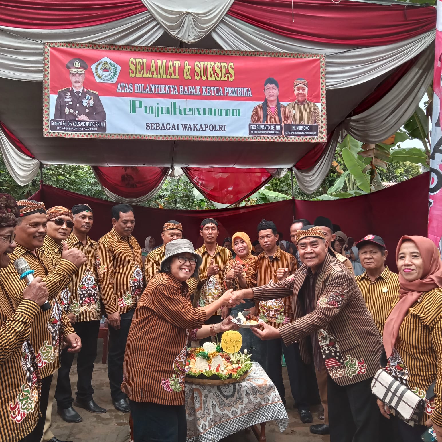 Ketua DPW PKB Pujakesuma Lampung Ki Hi Nuryono mengatakan perayaan Hut Ke-43 Pujakesuma tersebut sekaligus syukuran atas dilantiknya Ketua Dewan Pembina DPP Pujakesuma Komjen Pol Drs Agus Andrianto, SH, MH sebagai Wakapolri.