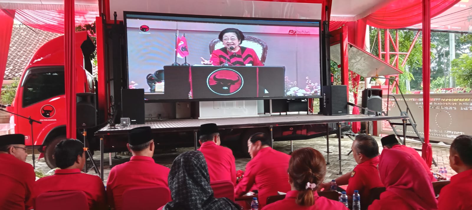 Bandar Lampung – DPD PDI Perjuangan Lampung menggelar acara peringatan HUT Ke-52 PDI Perjuangan di sekretariat setempat Jl Pangeran Emir M Noer, Teluk Betung Utara, Kota Bandar Lampung, Jum’at (10/1/2025). Acara utama adalah mendengar pidato Politik Ketua Umum Ibu Hj Megawati Soekarnoputri secara hybrid ( zoom ).