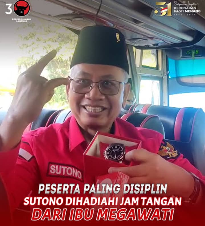 Begitu juga Banteng militan Lampung, para senior dan akar rumput partai mendambakan sosok Sutono Alumni Institut Pertanian Bogor ( IPB ) yang di pilih oleh Ibu Ketua Umum untuk menjadi Ketua DPD PDI Perjuangan Lampung, masa bhakti 2025-2030. Satyam Eva Jayate.