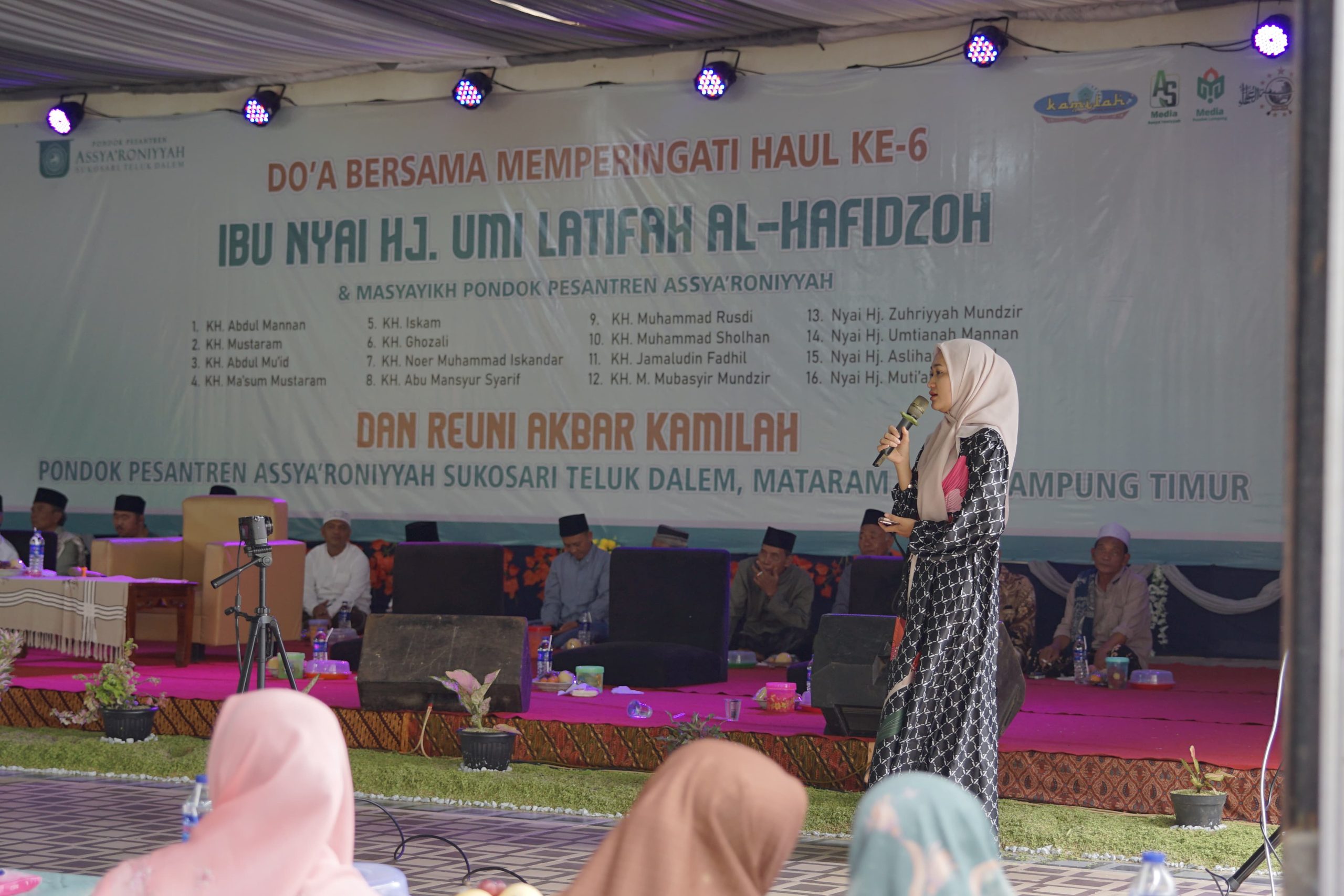 Lampung Timur – Wakil Gubernur Lampung terpilih, dr. Jihan Nurlela, menghadiri Haul ke-6 almarhumah Nyai Hj. Latifah Al-Hafidzhoh di Pondok Pesantren Assya’robiyyah, Teluk Dalem, Mataram Baru, Lampung Timur, Senin (6/1). Acara tersebut berlangsung khidmat dan penuh suasana kebersamaan.