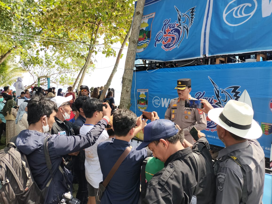“Dari pantauan di lapangan, antusias masyarakat sangat tinggi terhadap acara ini, banyak dari luar daerah datang langsung ke lokasi untuk melihat Lomba selancar tersebut”, kata Pandra, Senin (13/6/2022)