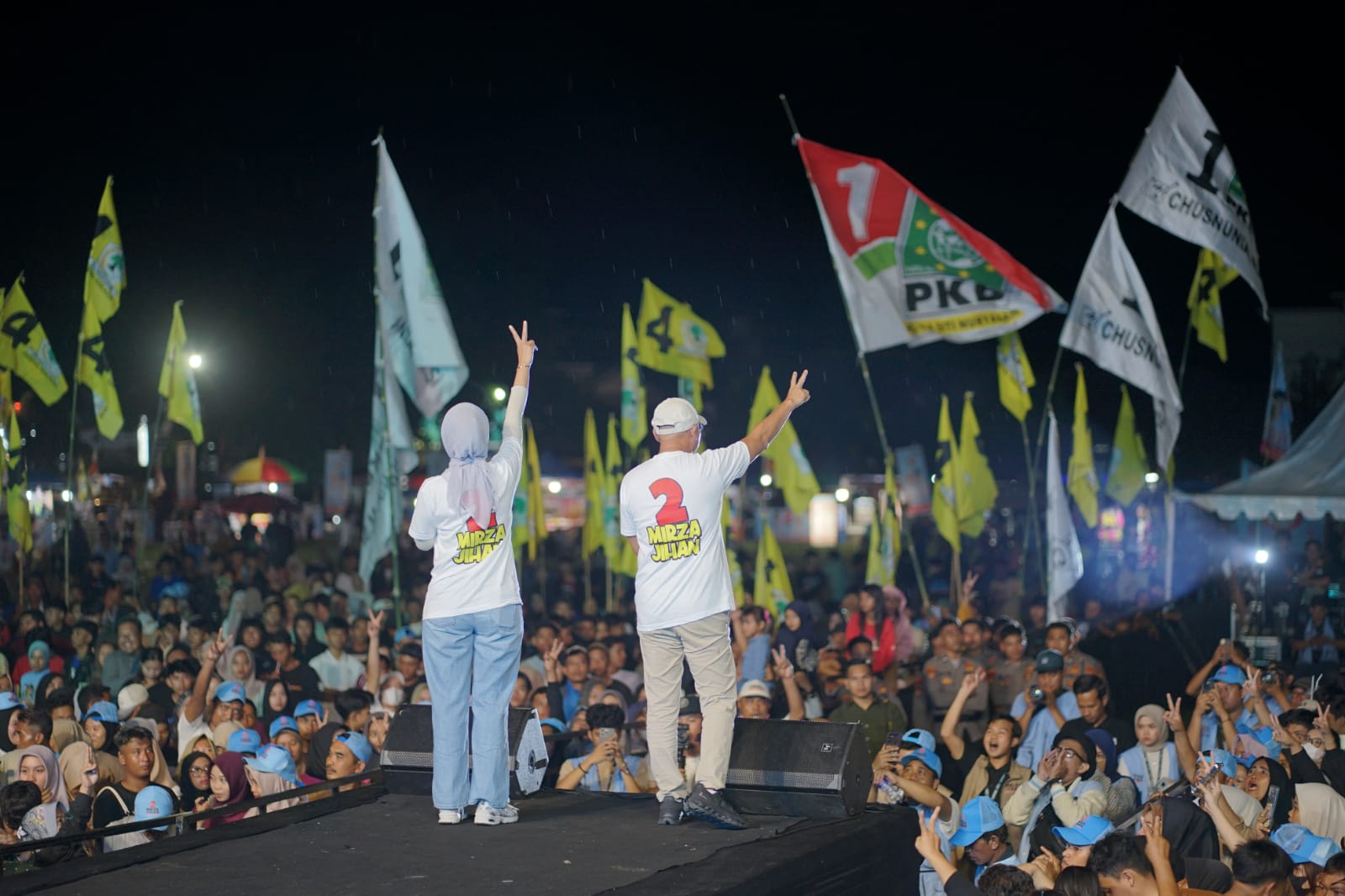 “Malam ini adalah malam terakhir kami, Mirza dan Jihan, berkampanye. Selama masa Pilkada ini, kami telah berkeliling ke hampir 850 titik di seluruh Provinsi Lampung. Kami menyapa masyarakat dari berbagai suku, usia, dan latar belakang,” ujar Mirza.