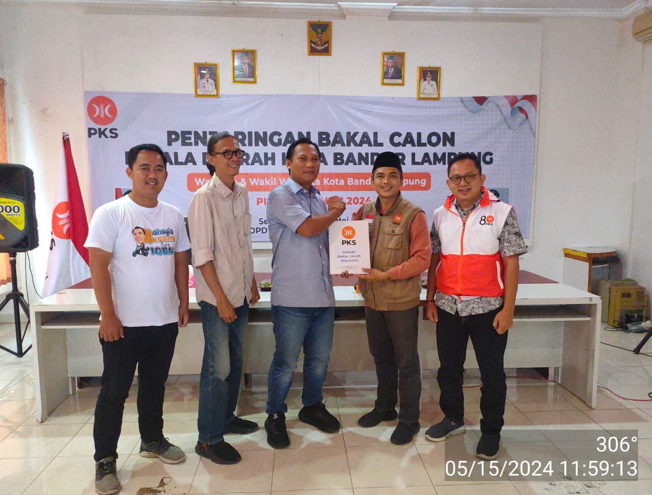 Bandarlampung – Bakal Calon Walikota Bandar Lampung, Iqbal Ardiansyah, bersama Tim Bandarlampung Bahagia mengembalikan berkas pendaftaran di Partai Keadilan Sejahtera (PKS) di Jalan Sisingamangaraja, Rabu (15/5).