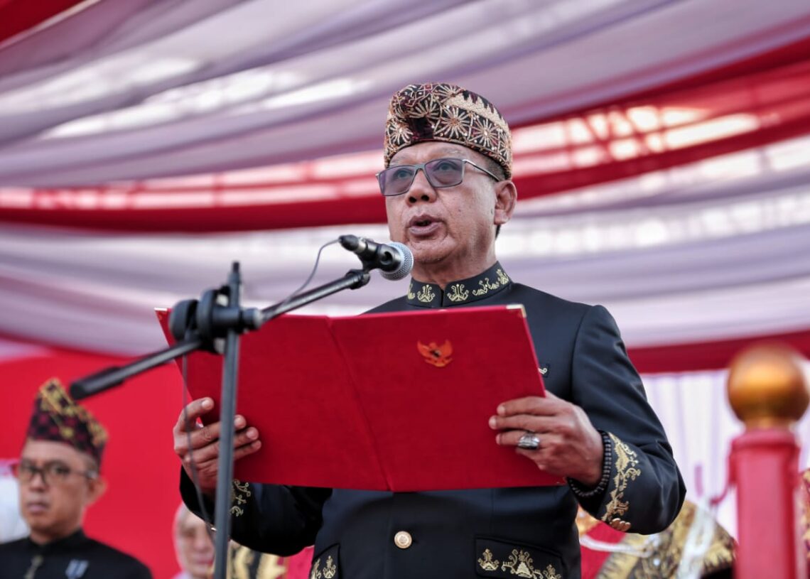 Bandarlampung – Ketua DPRD Lampung kembali membacakan Teks Proklamasi dalam perayaan HUT kemerdekaan RI ke 79 tahun yang digelar di Kota Baru, Kecamatan Jati Agung, Lampung Selatan, Sabtu (17/08)