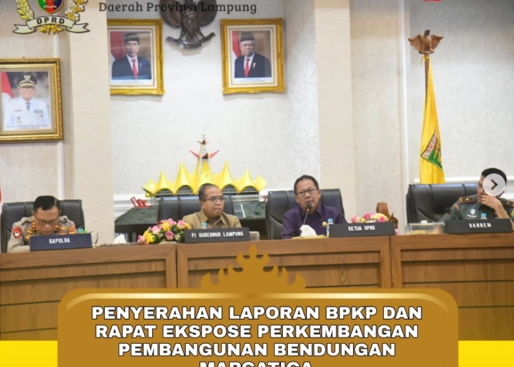 Bandarlampung – Ketua Dewan Perwakilan Rakyat Daerah (DPRD) Provinsi Lampung, Mingrum Gumay, SH., MH., menghadiri rapat penting yang digelar di Ruang Rapat Utama Kantor Gubernur Lampung. Rapat tersebut membahas dua agenda utama, yaitu penyerahan laporan dari Badan Pengawasan Keuangan dan Pembangunan (BPKP) serta ekspose perkembangan pembangunan Bendungan Margatiga. Selasa, (6/8/2024).